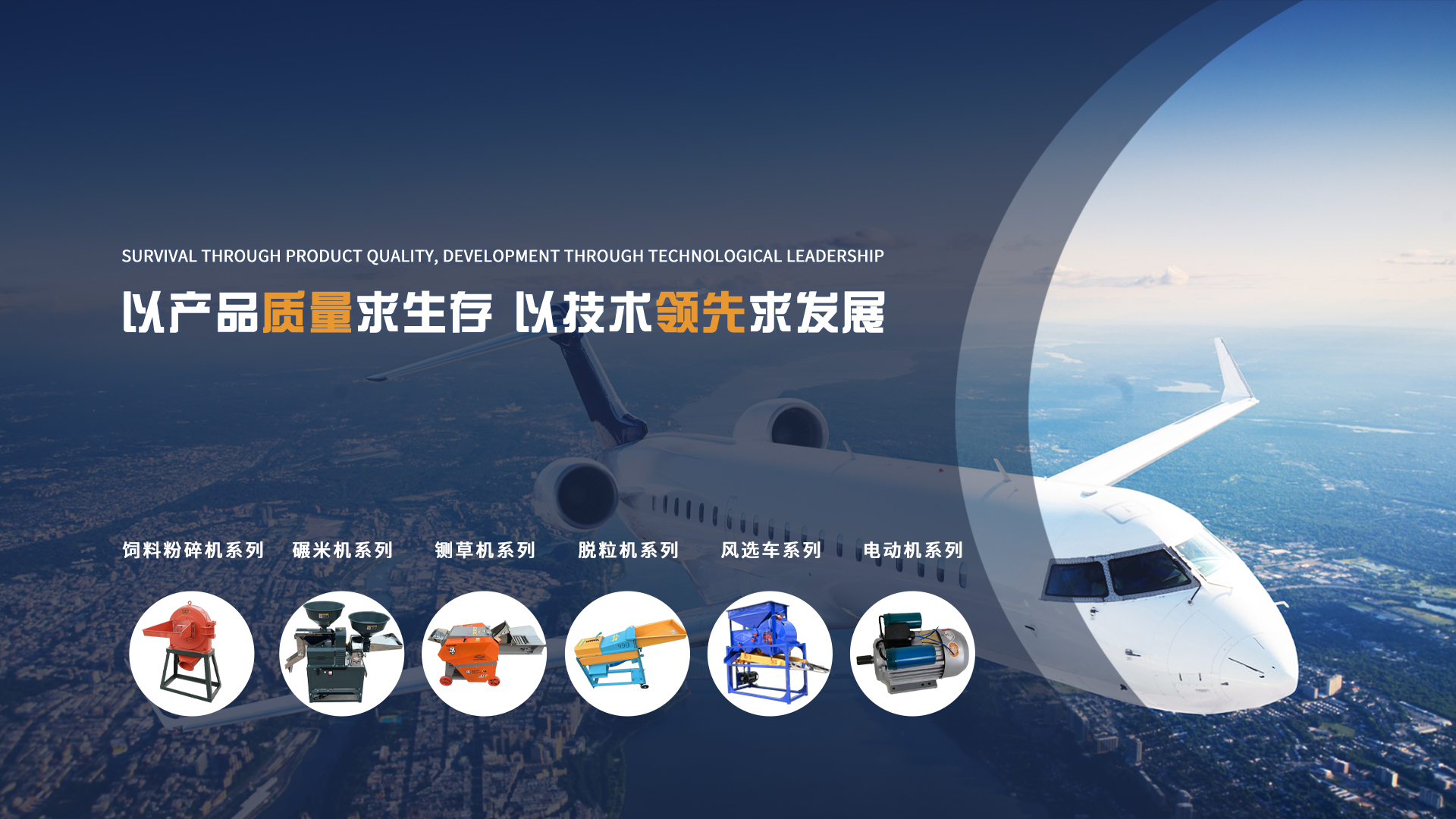 碾米機 自吸式粉碎機 齒爪式粉碎機 錘片式粉碎機 鍘草機/顆粒機/刨絲機/淀粉漿渣分離機 玉米脫粒機 磨粉機/磨漿機 芭蕉機 油菜脫粒機 風車 電機